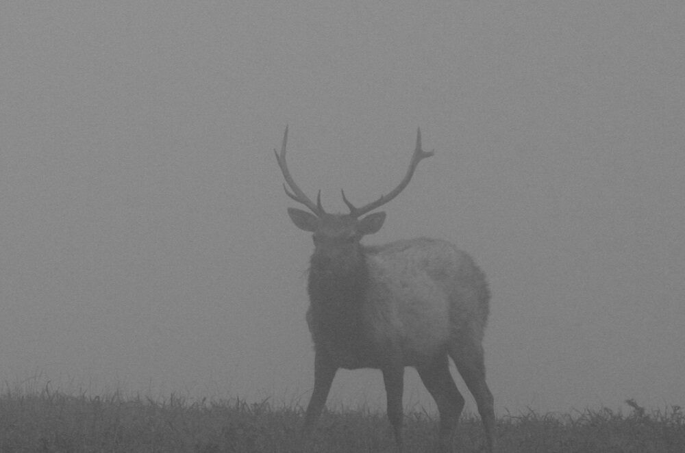 One afternoon, we were all up fishing in the Bella Coola River, just above Firvale, the trout fishing was good here and it was a nice place to just sit back and enjoy the scenery, all i could see were mountains covered in glaciers in all directions, flowing down the sides of these mountains was a sea of green speckled with so many waterfalls that I lost count. Although the sky above was blue, there was a fog rolling down the river; it was cool watching this slowly block our visibility to where we could just barely see the other side of the river. I first heard it, an elk bugling, it was haunting and as I looked across the river to where a small grassy meadow was. I saw him, a majestic old bull elk, sporting a huge set of antlers. As he moved through the fog, head held high, his antlers caused the fog to swirl behind him, and all the time, he was bugling to his herd. It was very cool.