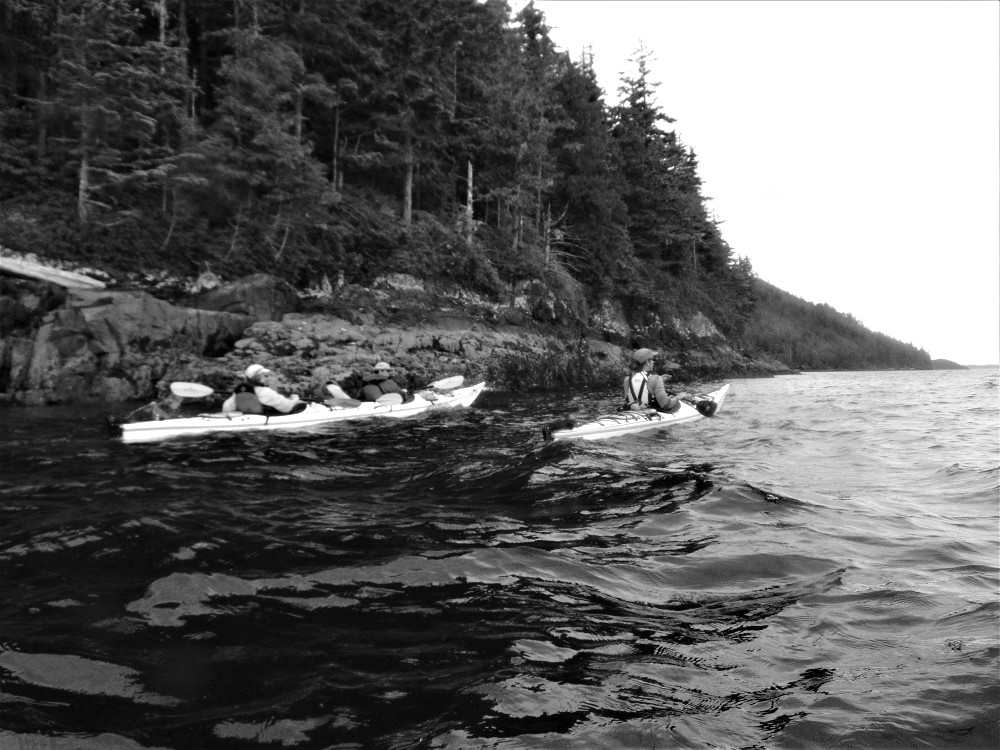 After the rest of our group woke up and we all ate a wonderful breakfast of banana pancakes and sausages, we carried the kayaks down to the water. After getting them loaded, we headed out for our second day. We headed across the entrance to Black Fish Sound, between Hanson Island and West Cracroft Island. Then, along the southwest shore of the island until we reached the Sophia Islands, stopping for a short break along the way. This was turning out to be a trip of a lifetime; everyone in our group was having such a grand time. Chet informed me that he just returned from a 2-year stint as a trauma surgeon in Afghanistan and needed this adventure.