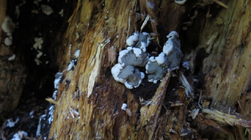 The brittle cinder fungi are a small, encrusting growth that has a huge effect on any tree that it gets a hold of. It is parasitic, it kills trees and then lives on the deadwood.