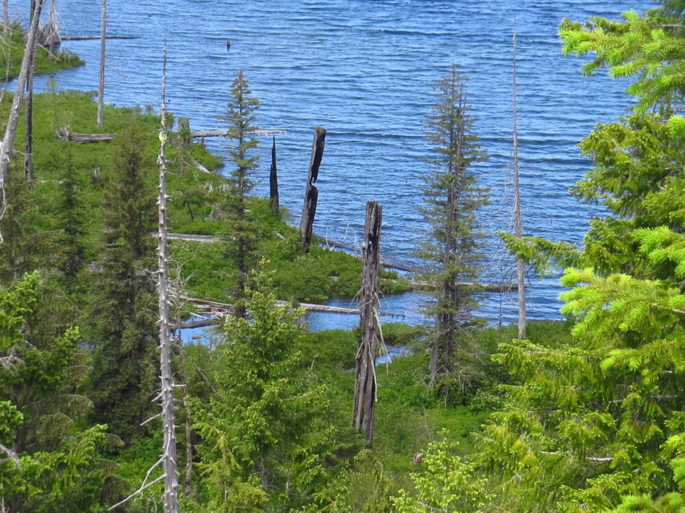Where the Upper Sebahall enters Vernon Lake, a large sandbar has formed that is quite big in the lower water of the summer months. It’s a nice place to put your kayak on shore and explore a bit, or maybe toss a line into the lake and relax for a while. The views from here are exceptional.